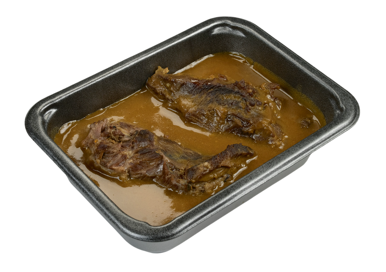 Die Ochsenbäckchen in Sauce sind ein besonders zartes Schmorfleischgericht für Liebhaber feiner Hausmannskost. Sorgfältig gegart und in Scheiben serviert, entfalten die aromatischen Bäckchen ihr volles Geschmackspotenzial in einer kräftigen, dunklen Sauce, die das Gericht harmonisch abrundet. Die schonende Zubereitung sorgt für eine butterweiche Konsistenz und macht dieses Gericht zu einem echten Genussmoment. Für optimale Ergebnisse die Schale im vorgeheizten Backofen bei 160 °C (Ober-/Unterhitze, mittlere Schiene) mit geschlossener Folie ca. 40 Minuten erhitzen. Alternativ gelingt die Erwärmung auch in der Mikrowelle bei 700 W in etwa 7 Minuten. Besonders empfehlenswert zu Kartoffelpüree, Wurzelgemüse oder Spätzle